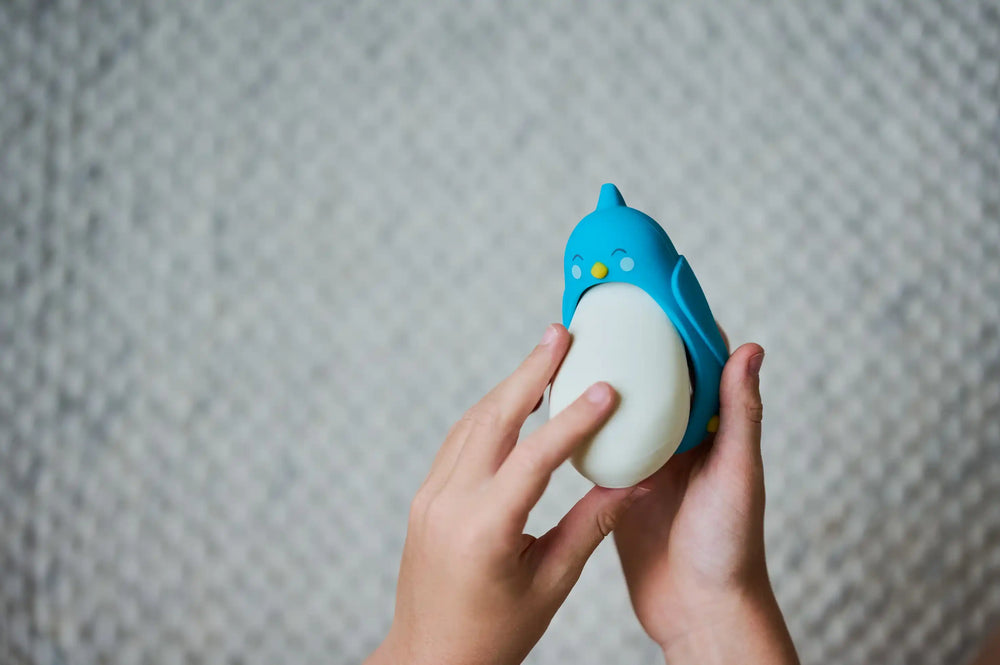 The interchangeable sleeves make the moonbuddy extra fun! We currently have two versions: Bibi the bird and Barry the bear, with more characters on the way.